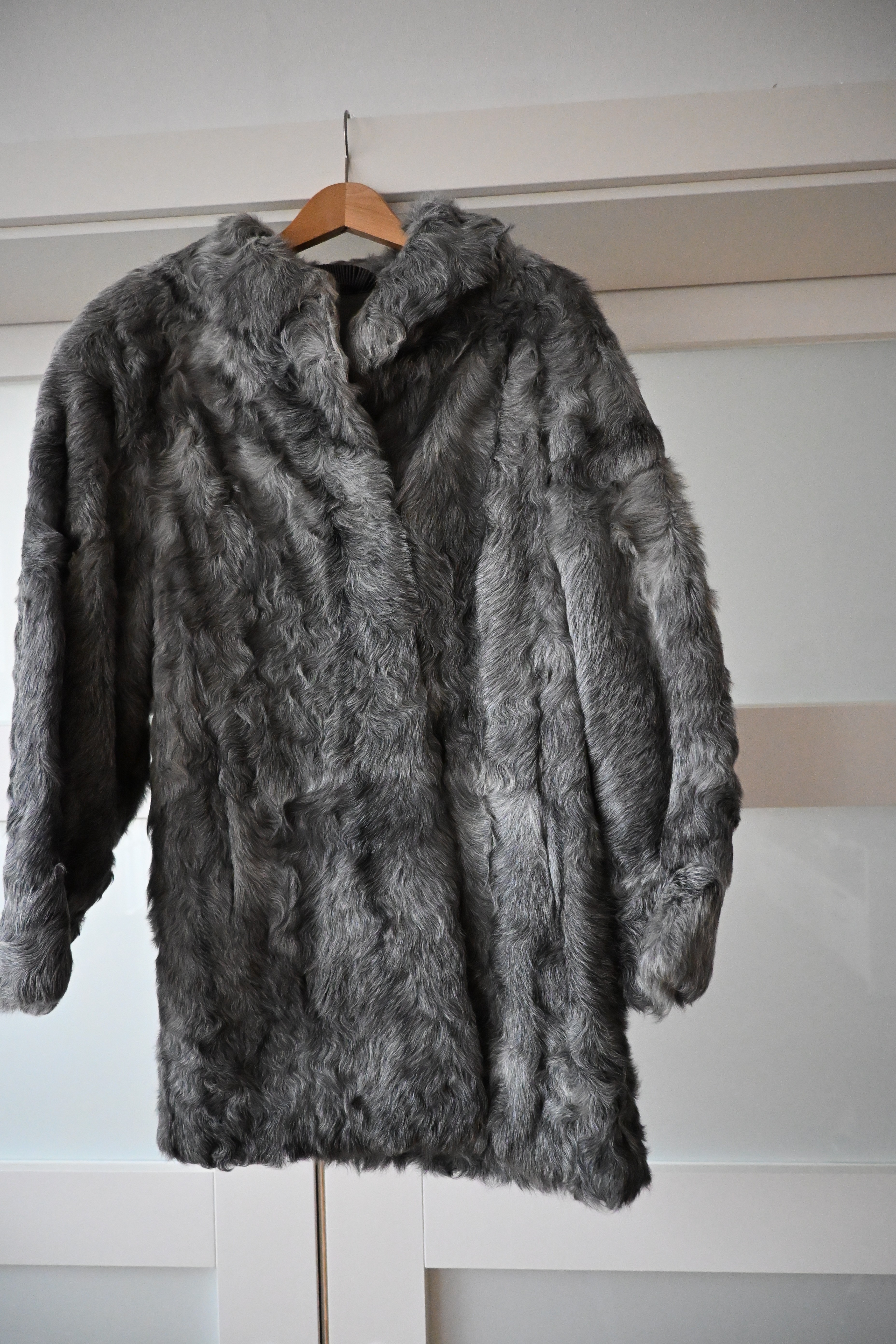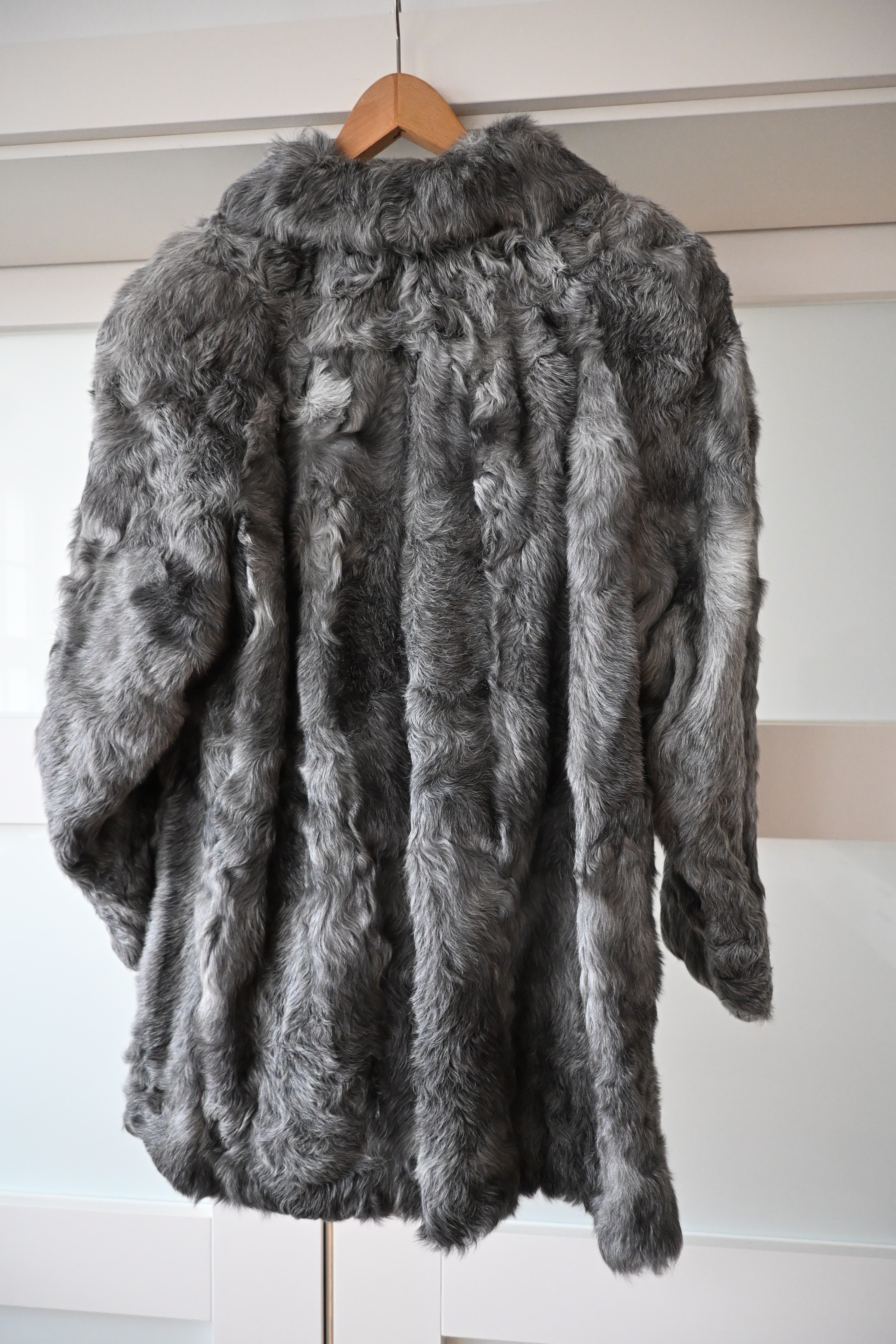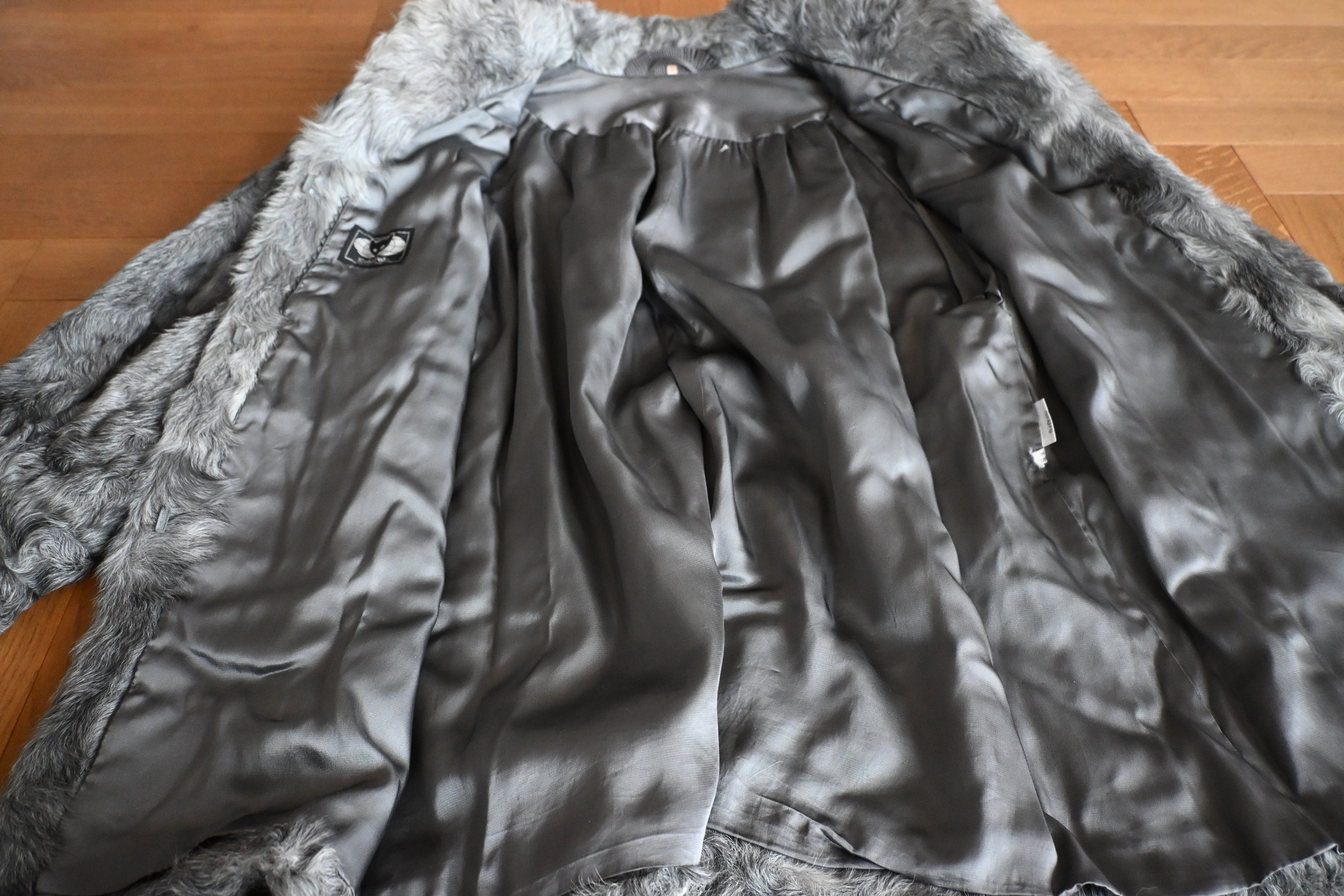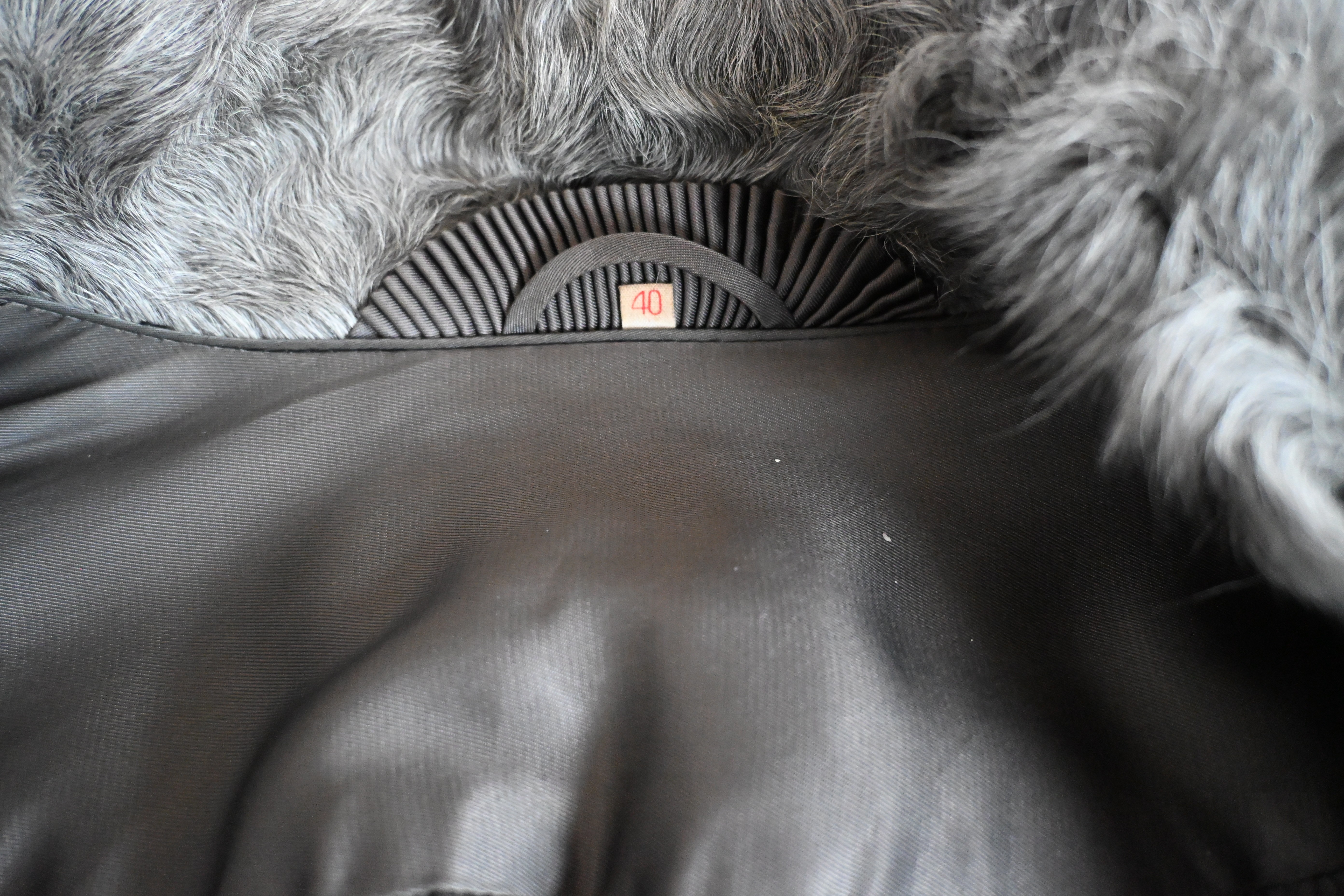 Bitte Nahaufnahmen der Fellstruktur und, wenn möglich, ein Etikett fotografieren. Bitte eine klare Aufnahme des Innenleders ergänzen. Bitte vollständige Ansichten vorne und hinten ergänzen.