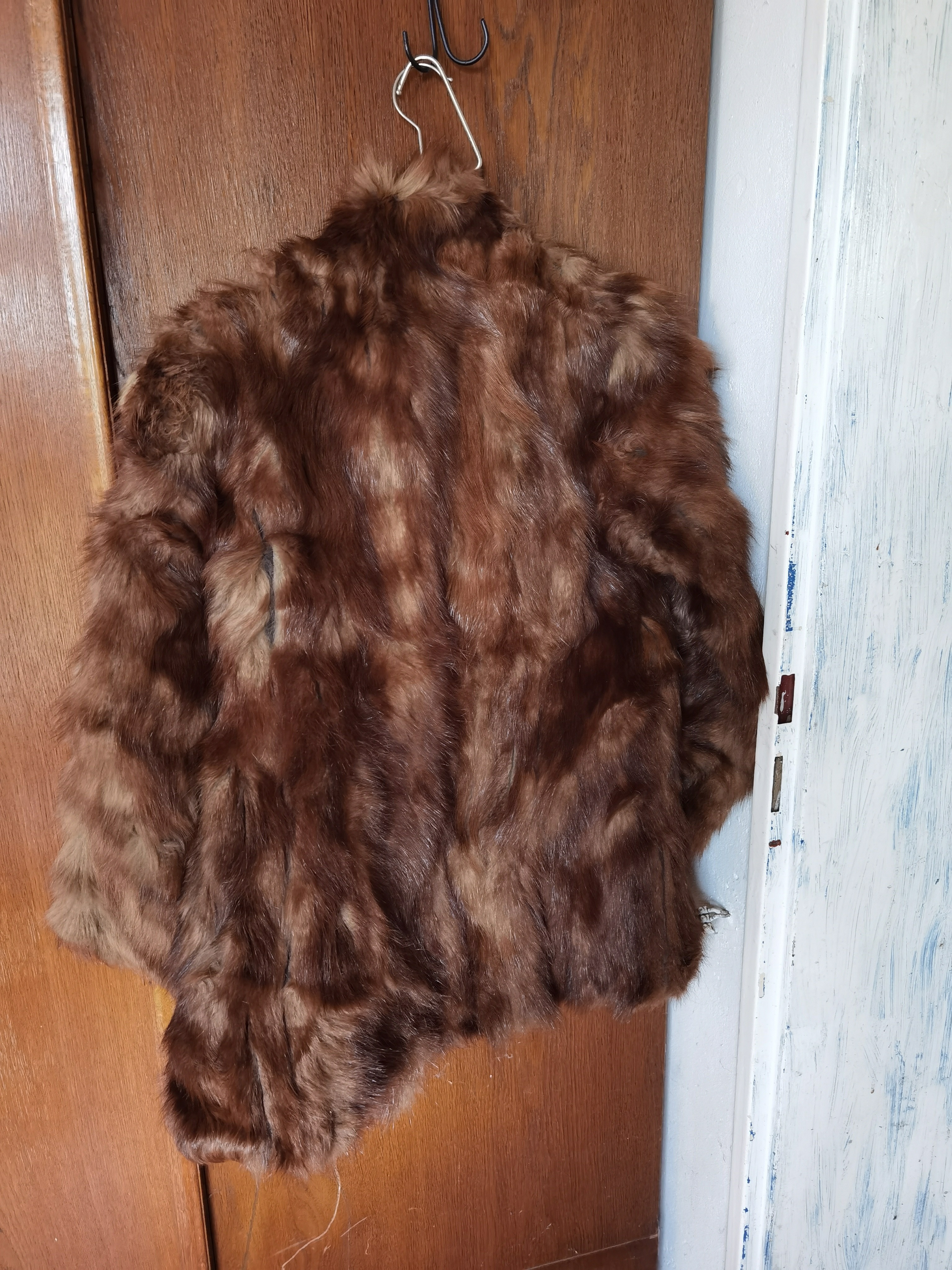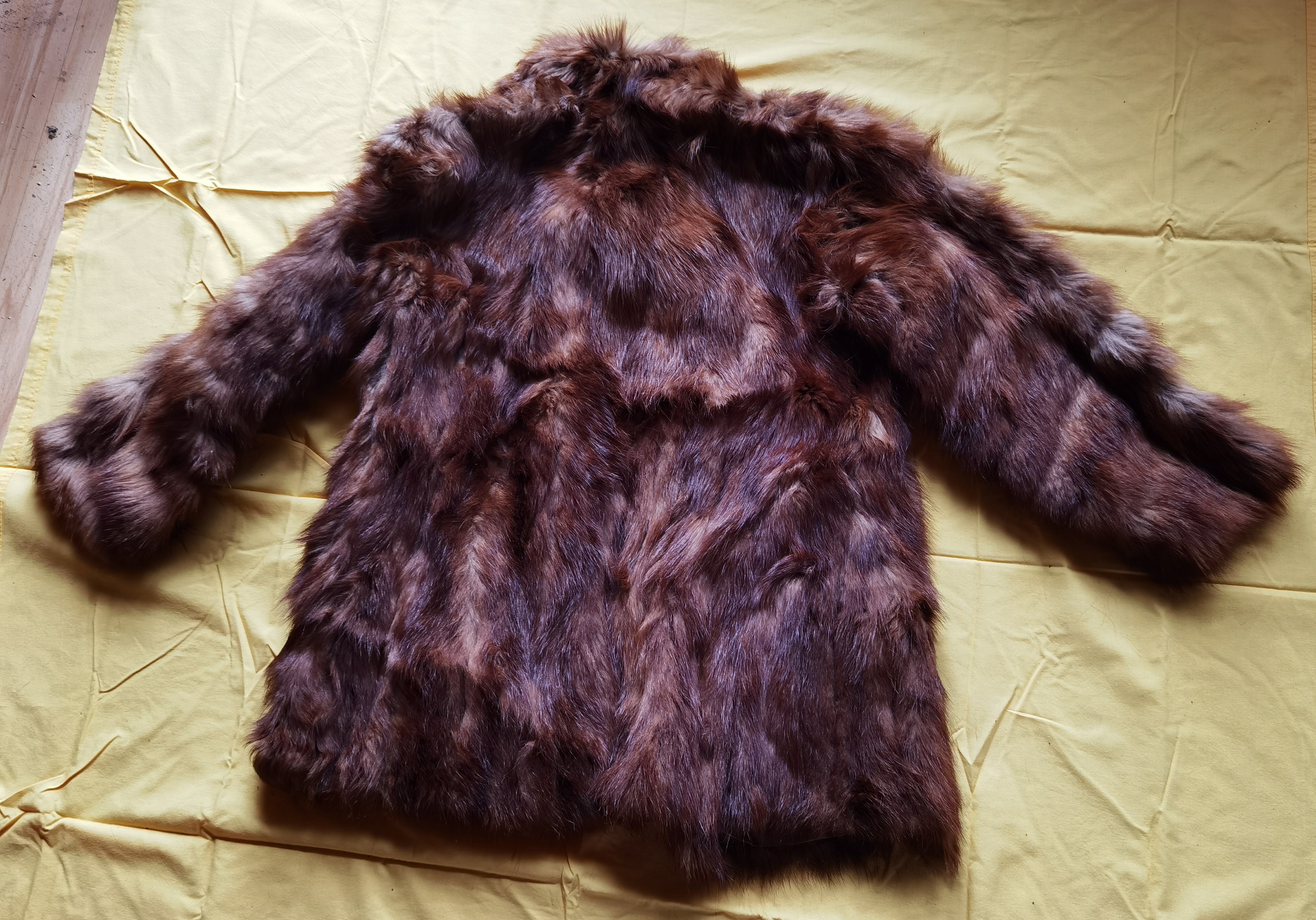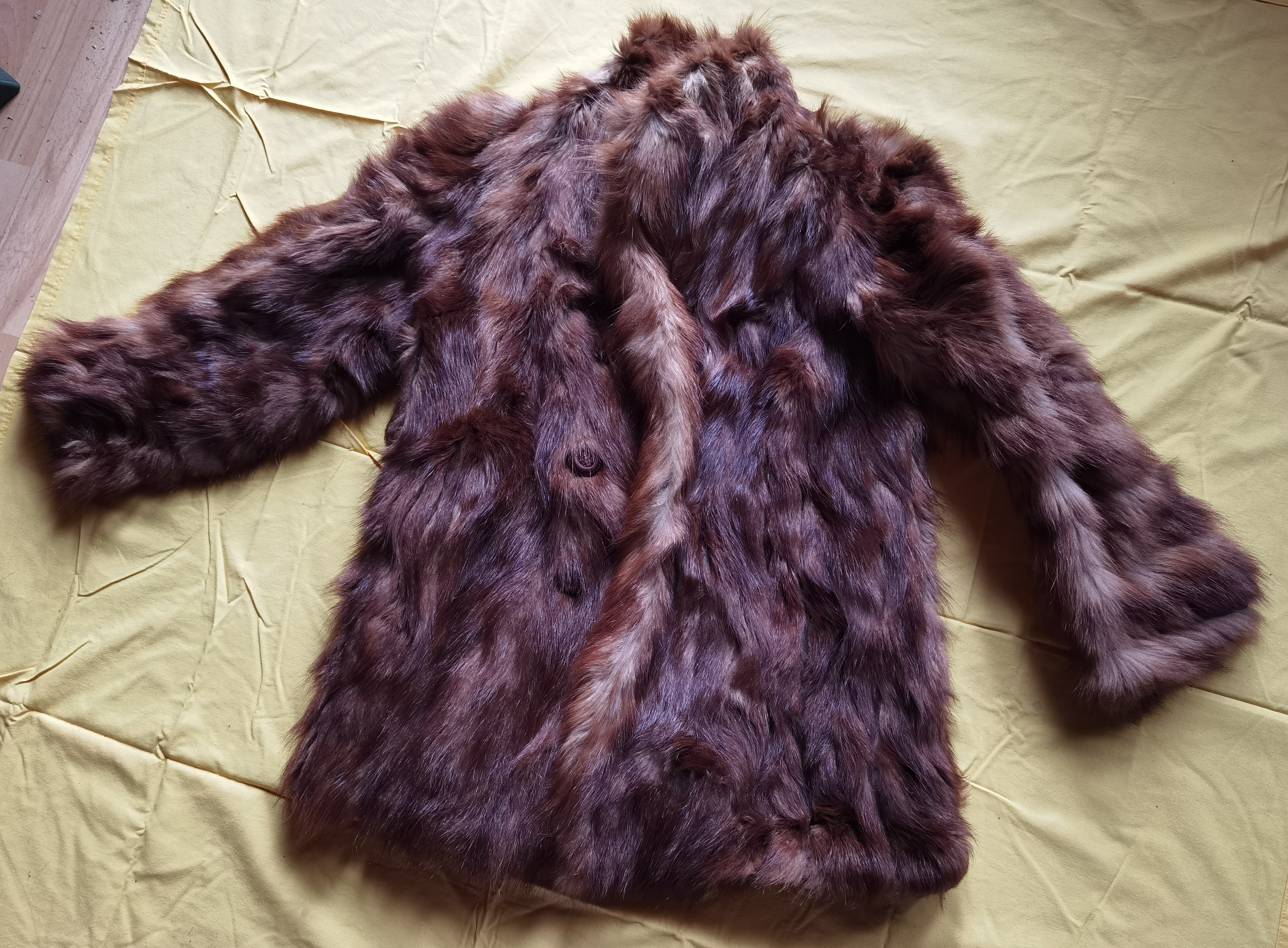 Bitte Nahaufnahmen der Fellstruktur und, wenn möglich, ein Etikett fotografieren. Bitte eine klare Aufnahme des Innenleders ergänzen. Bitte vollständige Ansichten vorne und hinten ergänzen. Bitte Detailaufnahmen sichtbarer Schäden oder stark beanspruchter Stellen hinzufügen.